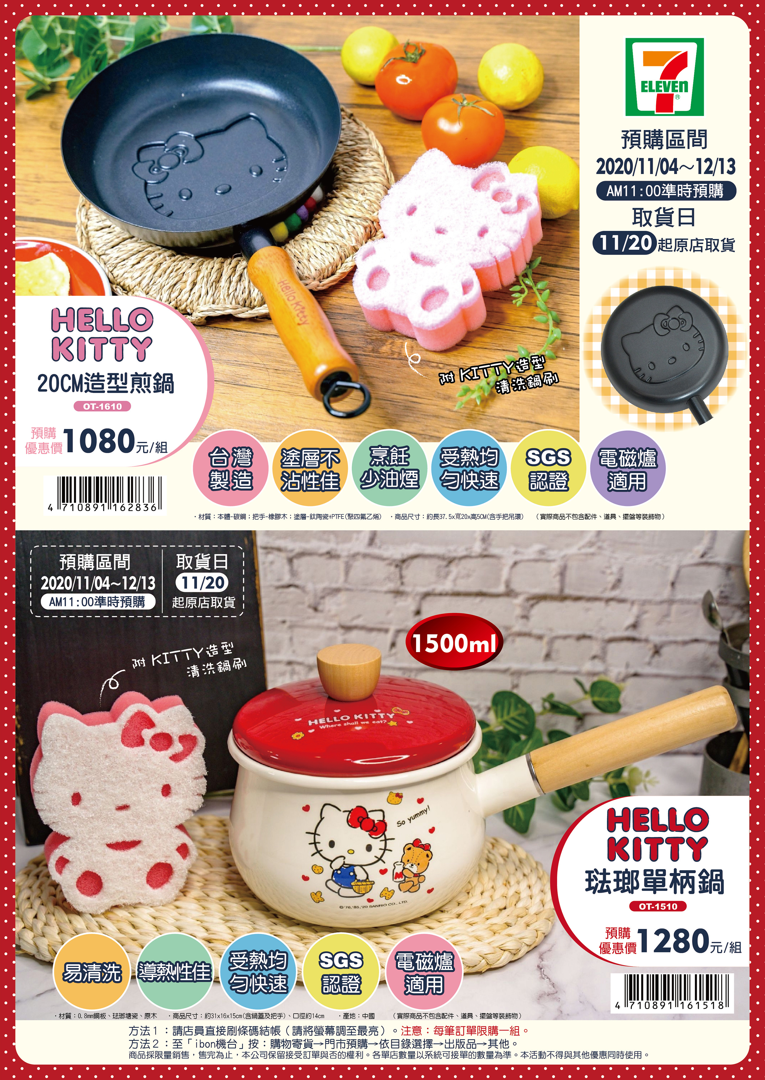 7-11推出Hello Kitty造型煎鍋組、珐瑯單柄鍋組