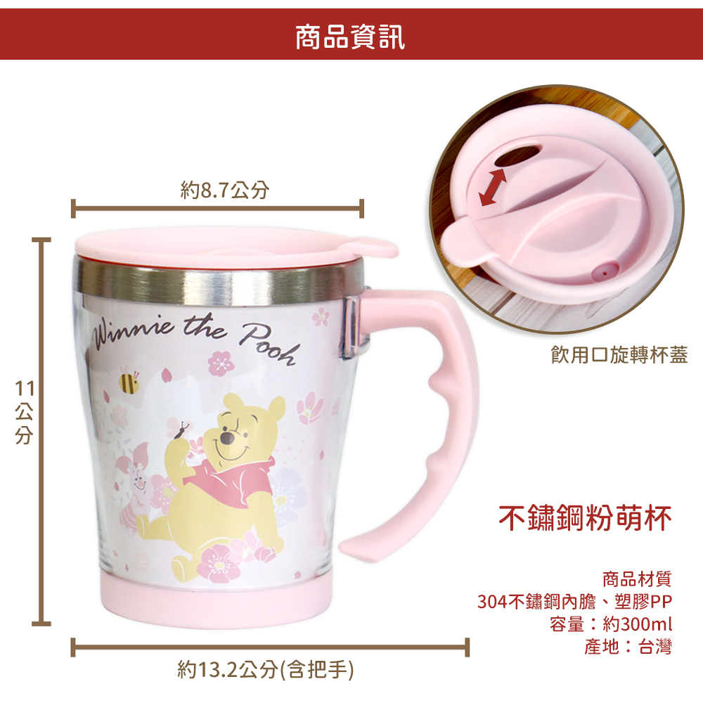 【Disney】迪士尼不鏽鋼粉萌杯/辦公杯/馬克杯/ 300ml 維尼櫻花 DS-8013P