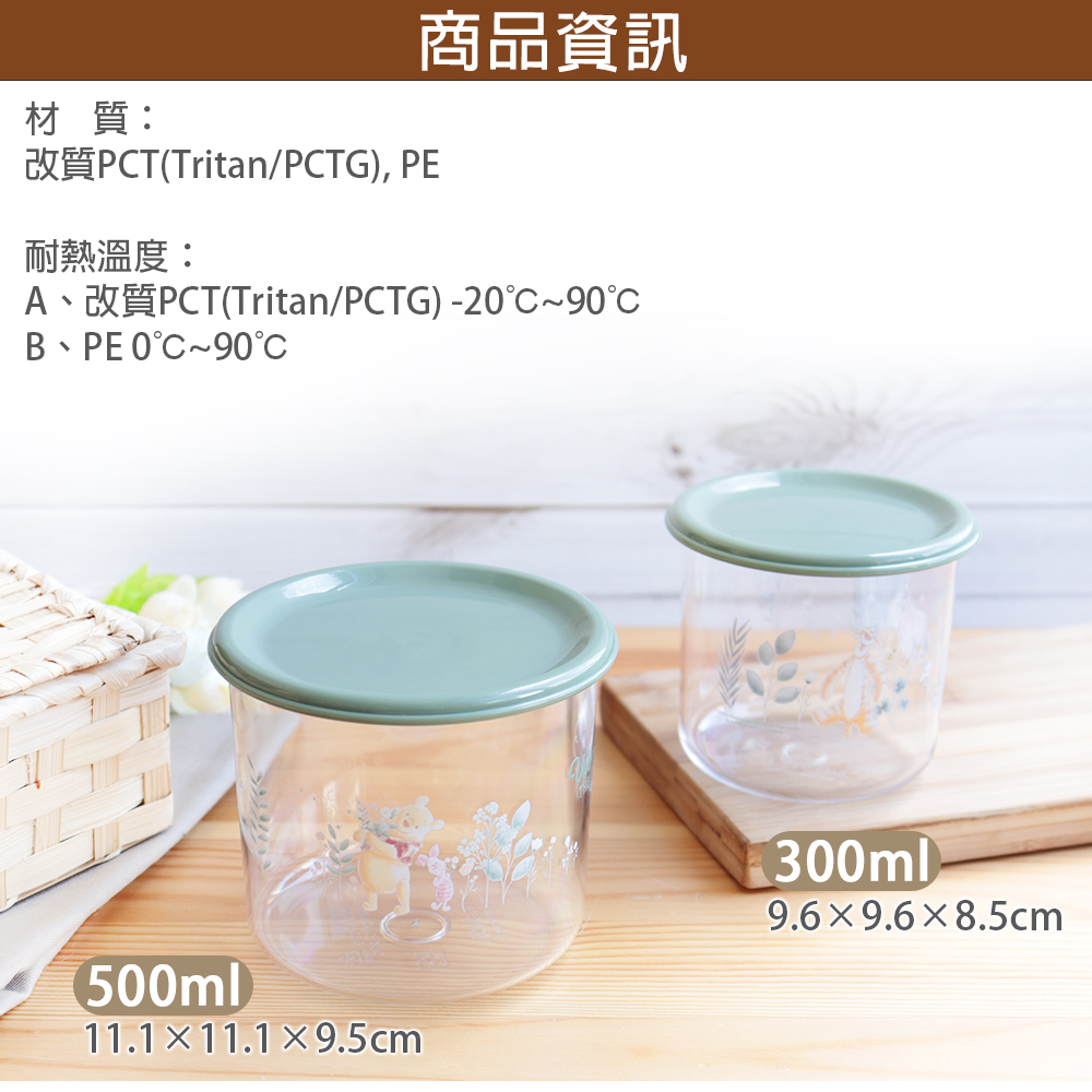 【Disney】迪士尼 TRITAN 可堆疊輕透儲存罐二件組 小熊維尼 DS-7119WN