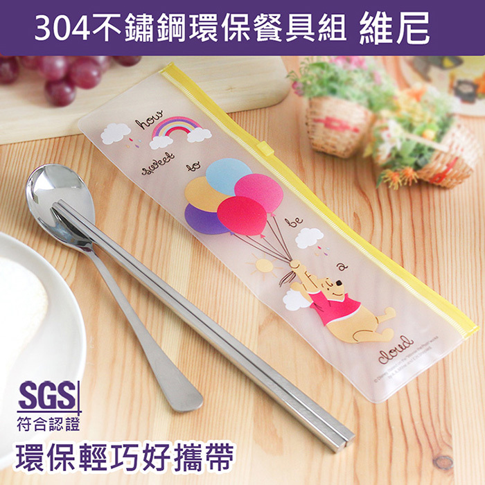 【Disney】 304不鏽鋼環保餐具3件組-維尼 DS-7510WN