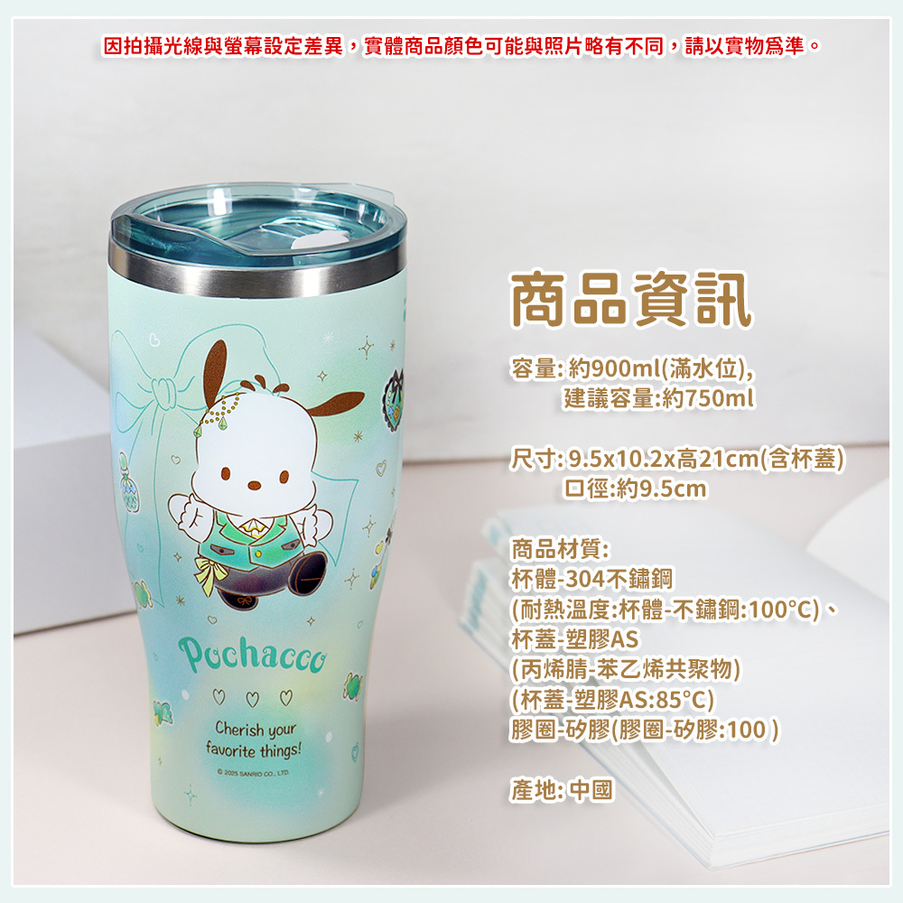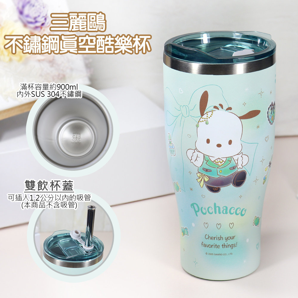 【SANRIO】三麗鷗不鏽鋼真空酷樂杯 冰霸杯900ml-帕恰狗 KF-8900PC