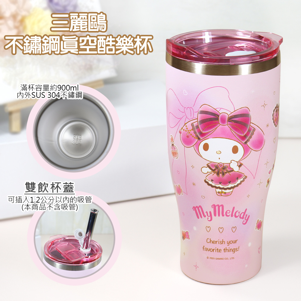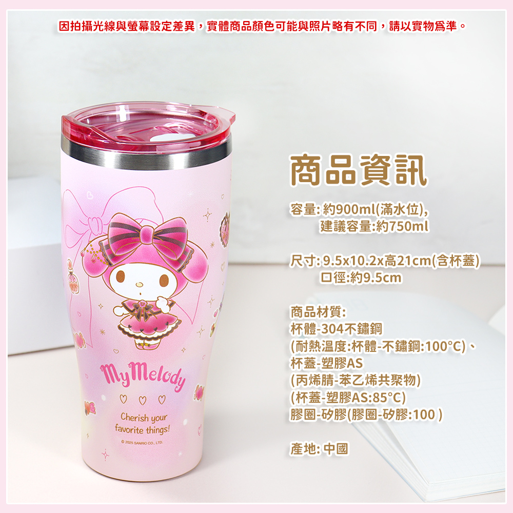 【SANRIO】三麗鷗不鏽鋼真空酷樂杯 冰霸杯900ml-美樂蒂 KF-8900MM