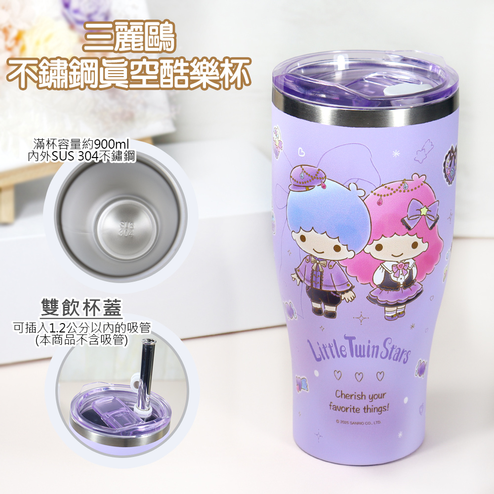 【SANRIO】三麗鷗不鏽鋼真空酷樂杯 冰霸杯900ml-雙星仙子 KF-8900TS
