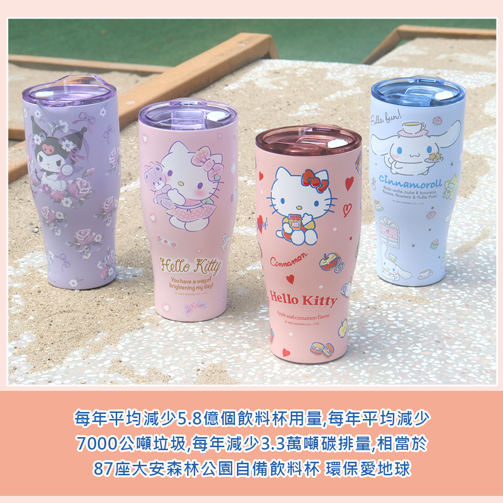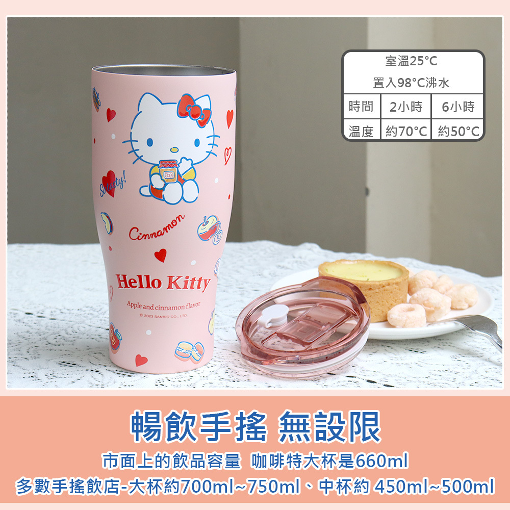 【SANRIO】三麗鷗不鏽鋼真空酷樂杯 冰霸杯900ml-HELLO KITTY下午茶 KF-7908KCB