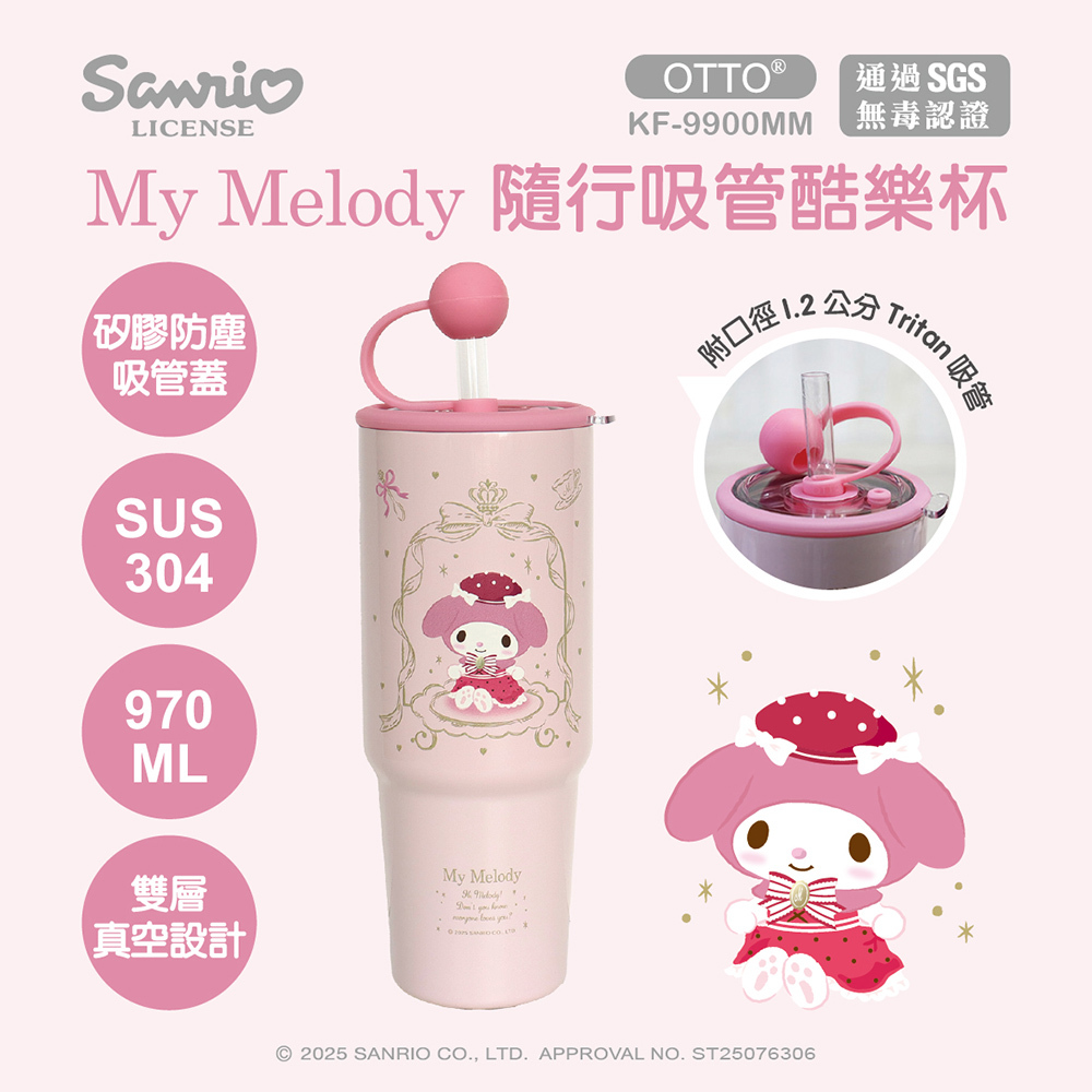 【SANRIO】三麗鷗不鏽鋼真空隨行吸管酷樂杯 美樂蒂 KF-9900MM