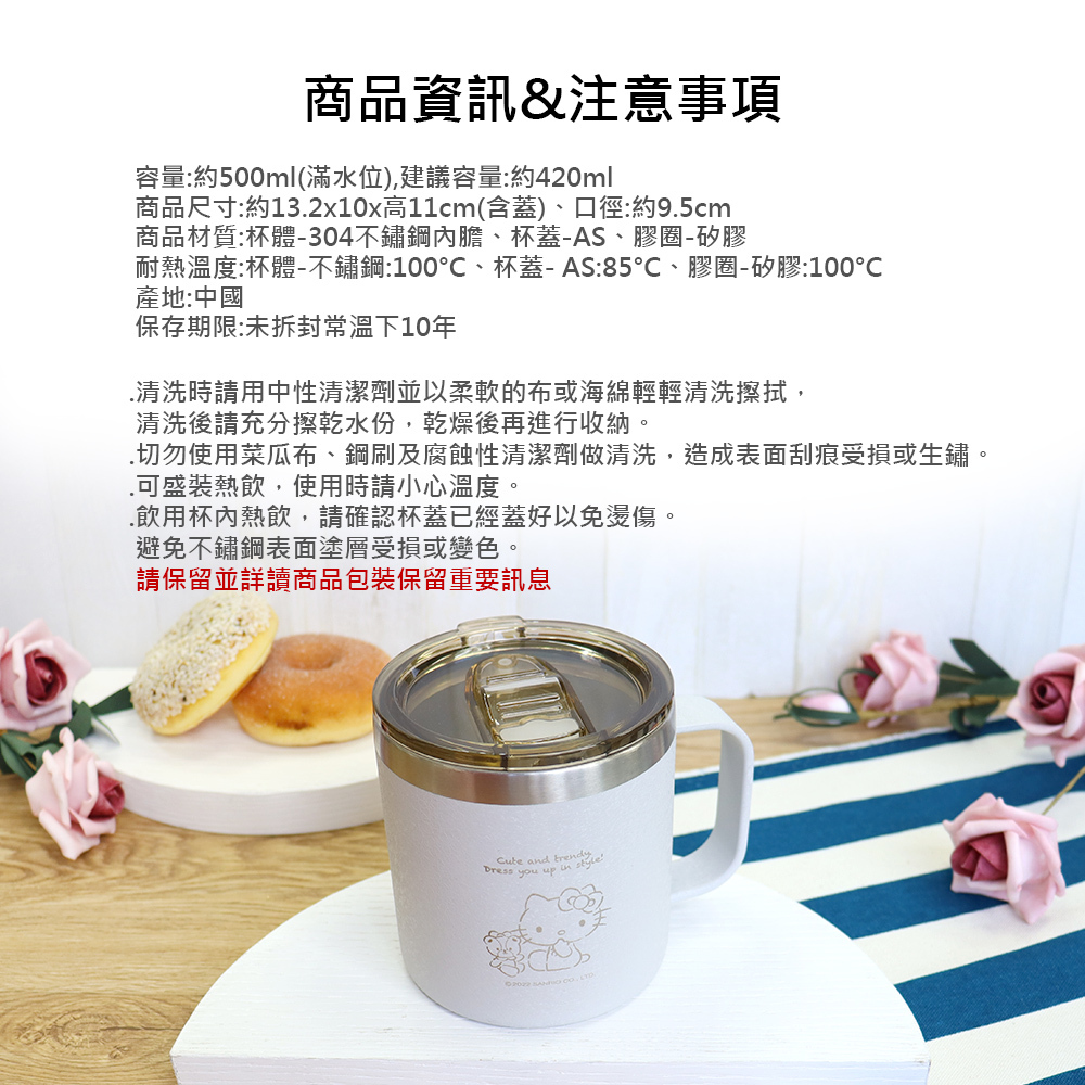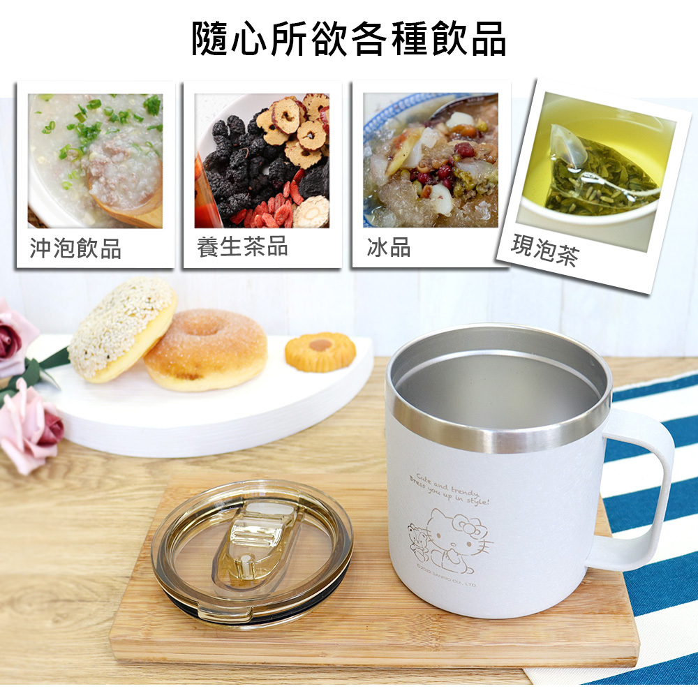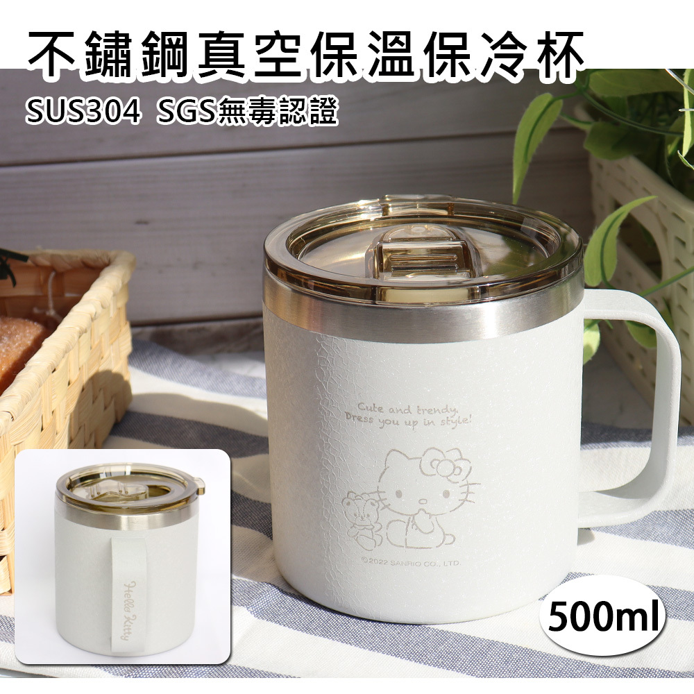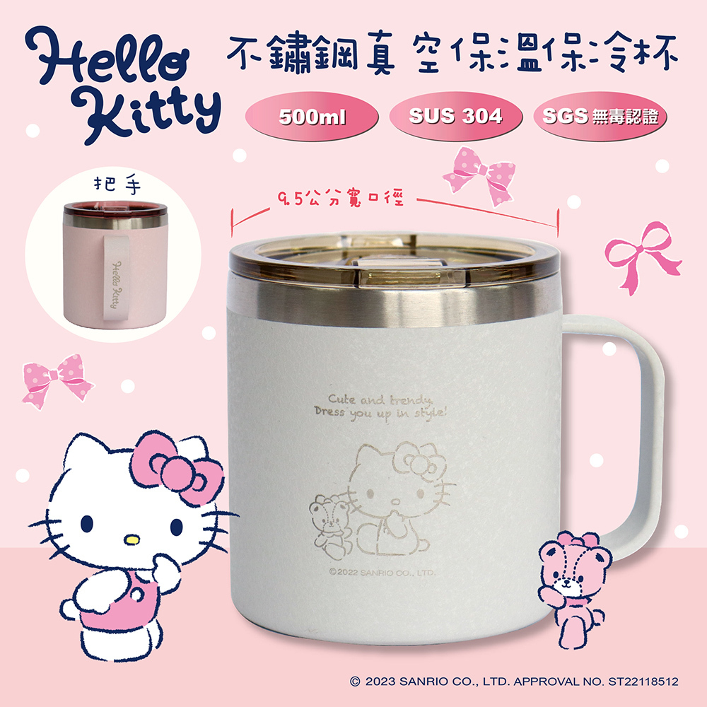 【SANRIO】HELLO KITTY不鏽鋼真空保溫保冷杯/馬克杯 (雷刻-銀) KF-5422ES