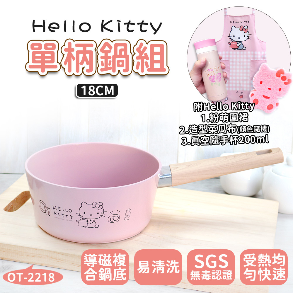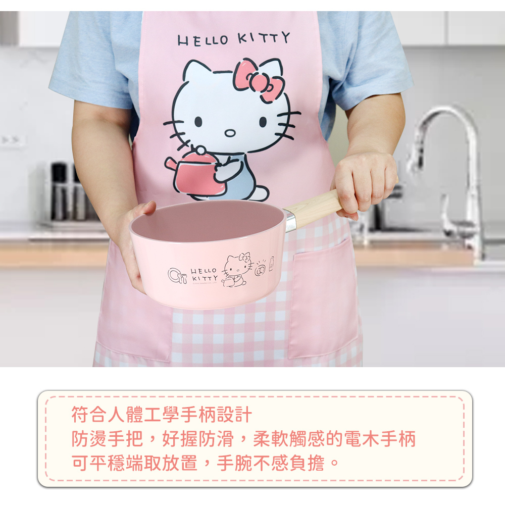 【Sanrio】Hello Kitty-陶瓷不沾18公分單柄鍋+圍裙組+隨手杯組 OT-2218AE