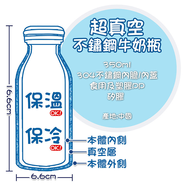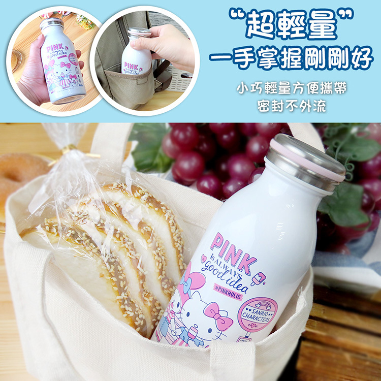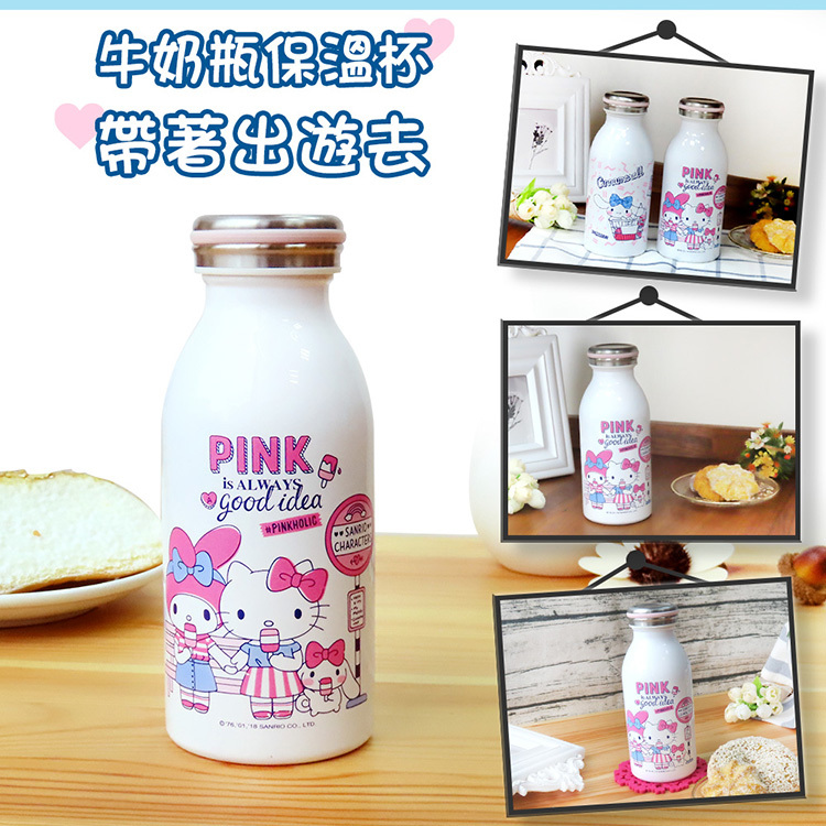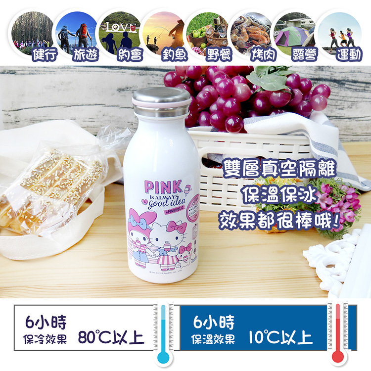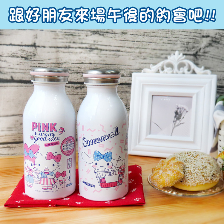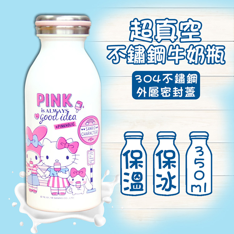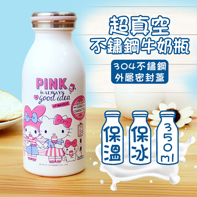 【SANRIO】夏好朋友 長效保溫不鏽鋼牛奶瓶350ml(贈杯套*1)