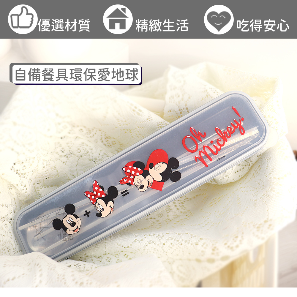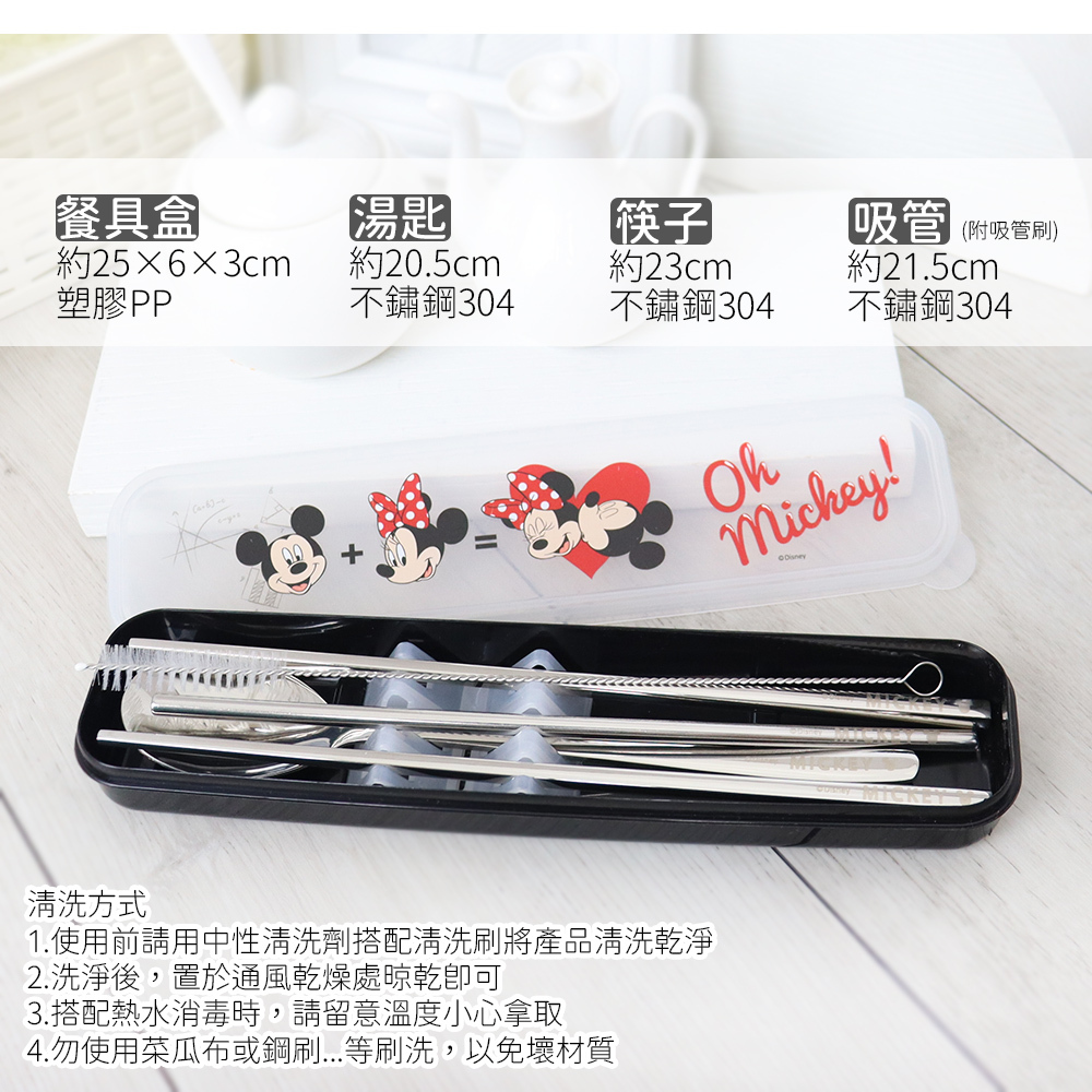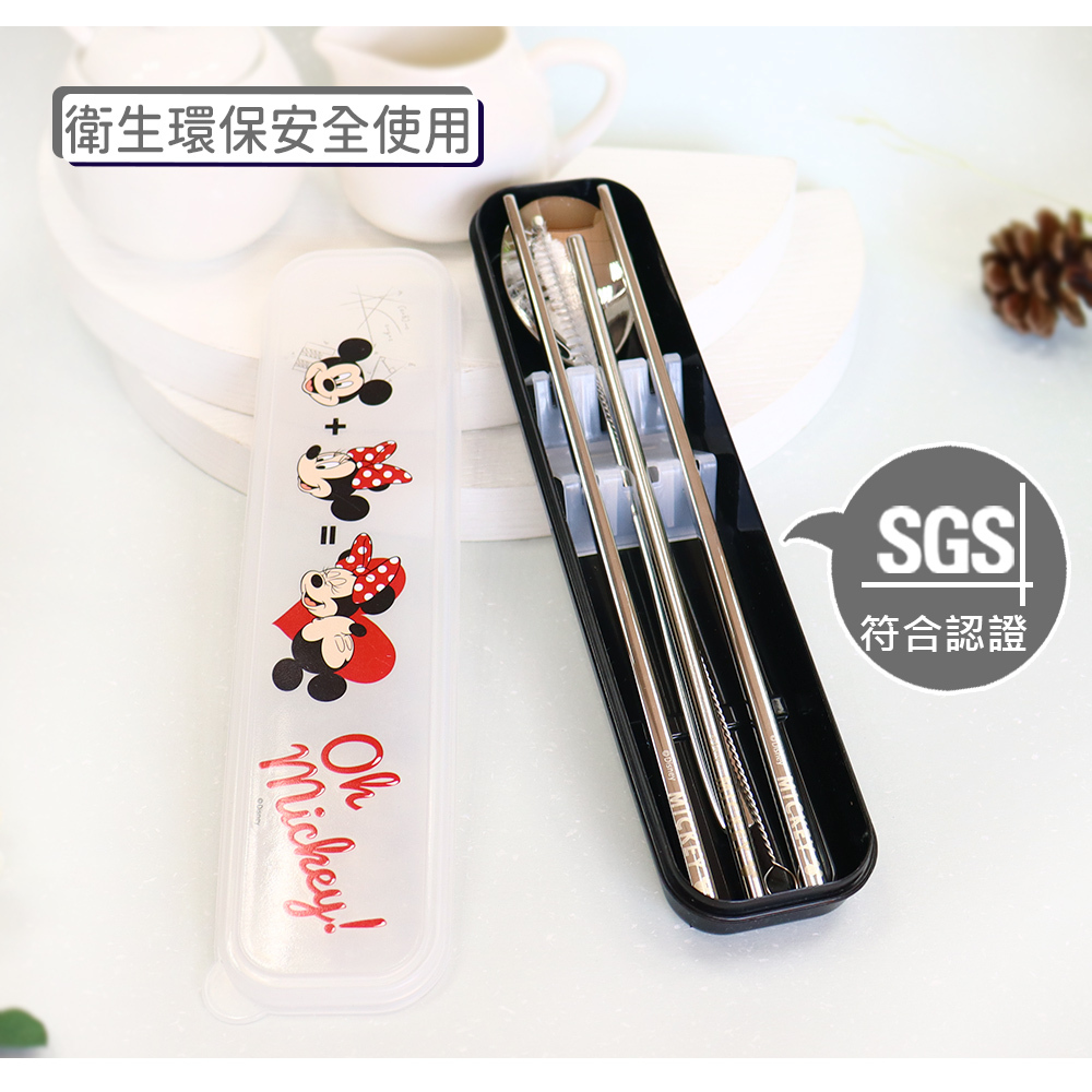 【Disney】迪士尼 不鏽鋼環保餐具吸管5件組-米奇米妮 DS-7210MM