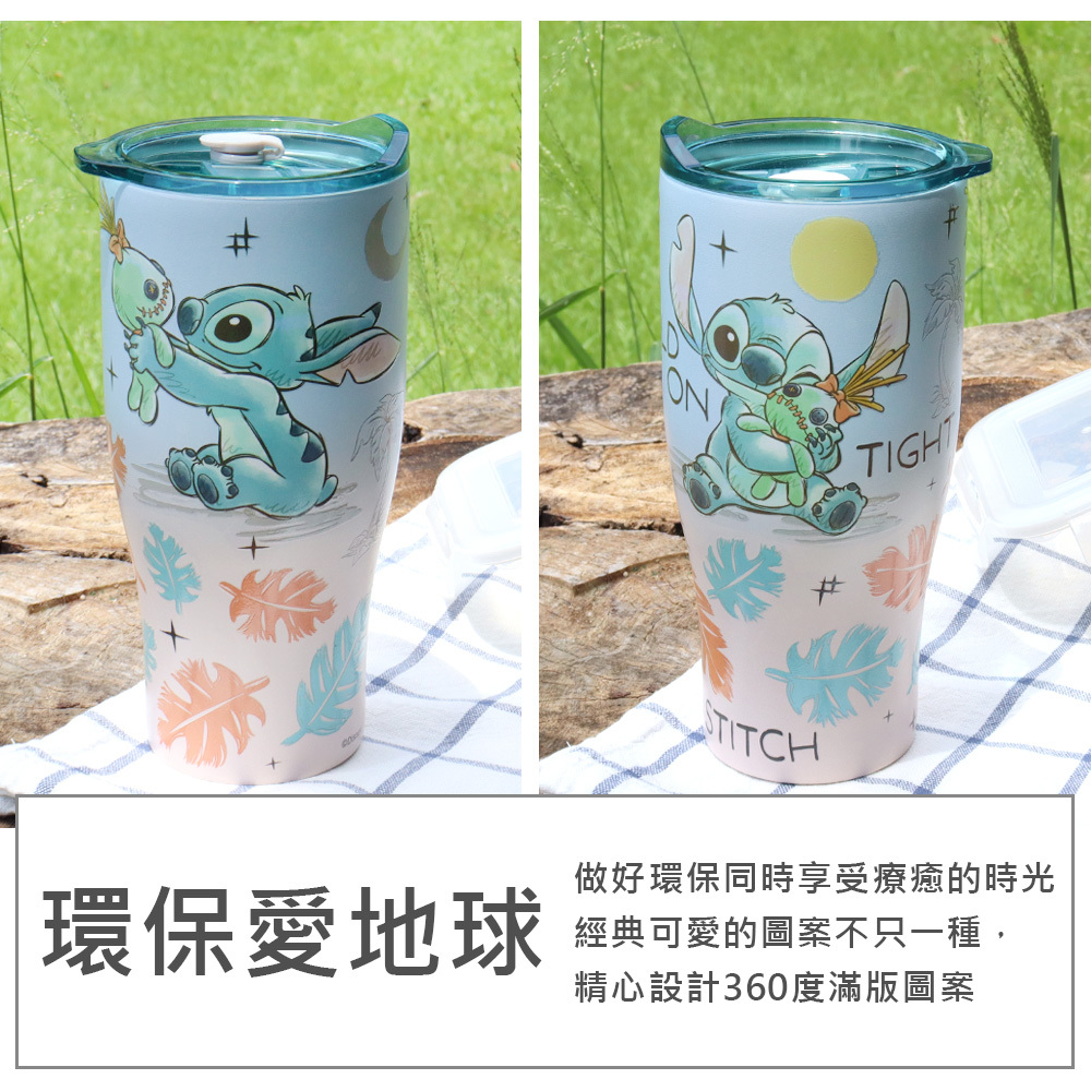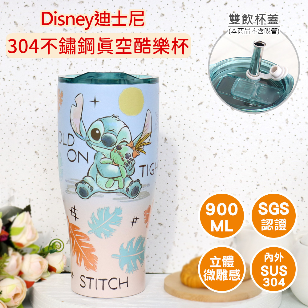 【Disney】迪士尼不鏽鋼真空酷樂杯 冰霸杯-史迪奇-沙灘 DS-7908STB