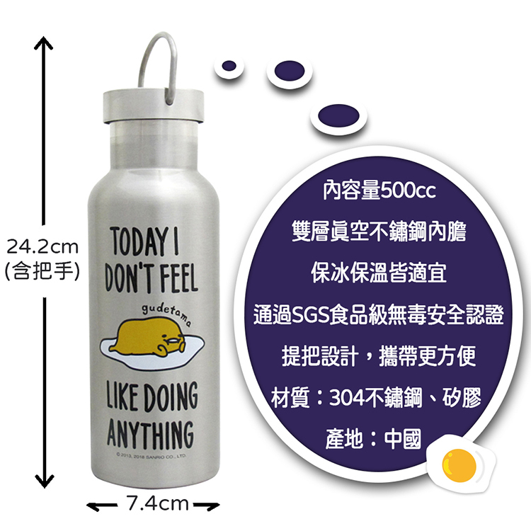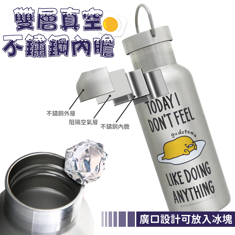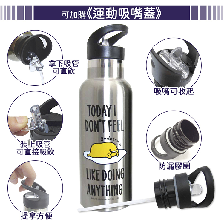 【Sanrio】蛋黃哥真空不鏽鋼酷炫運動瓶500ml+運動吸嘴 KF-5500GU