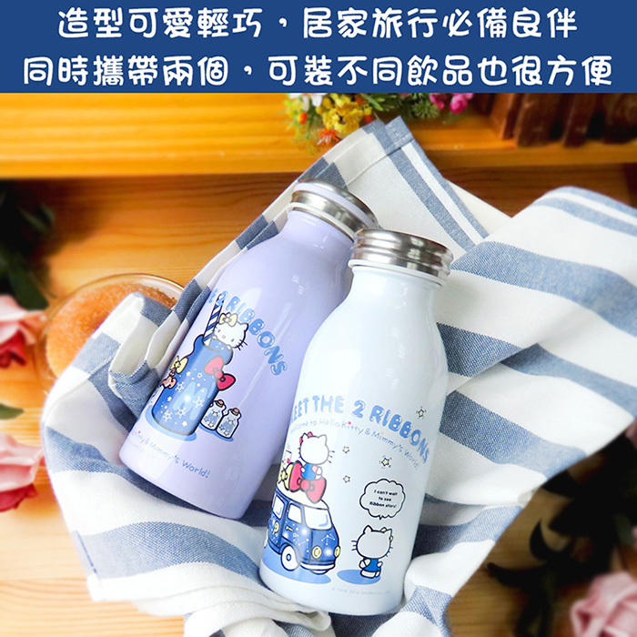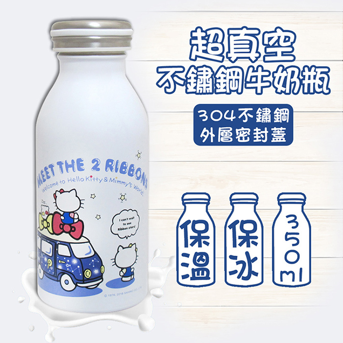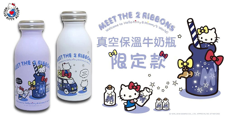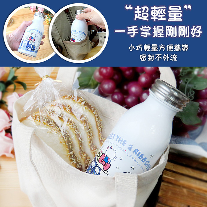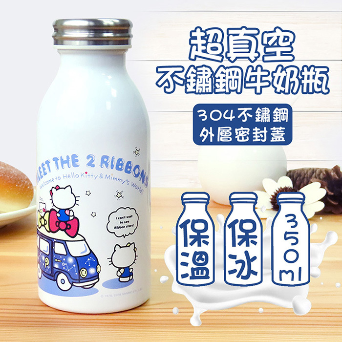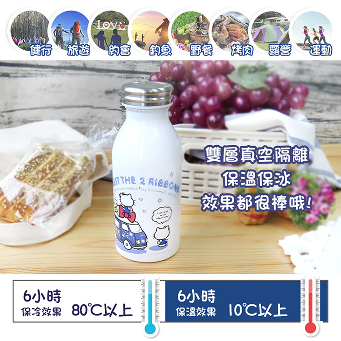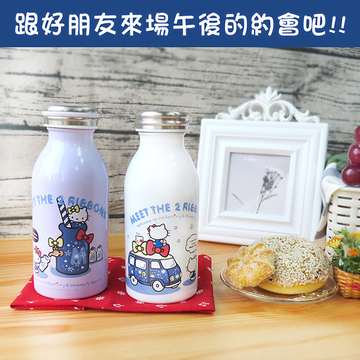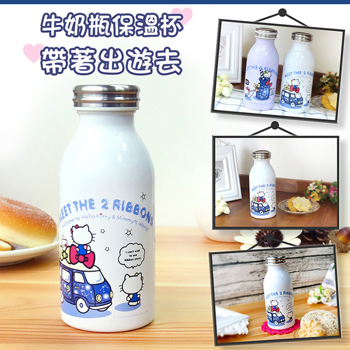 【SANRIO】Kitty Action長效保溫牛奶瓶350ml - 白(贈杯套*1)