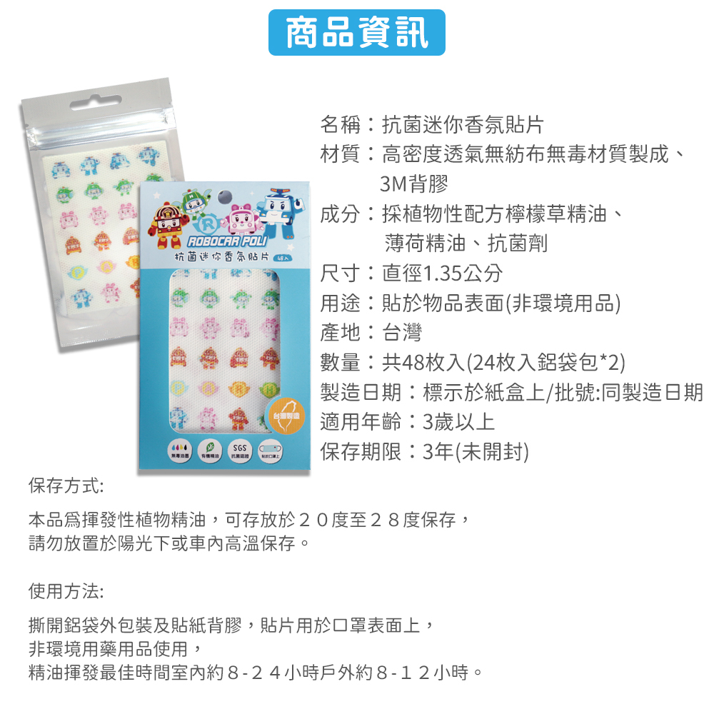 【救援小英雄】台灣製抗菌迷你香氛貼片/口罩貼片-48枚 KM-6048PL