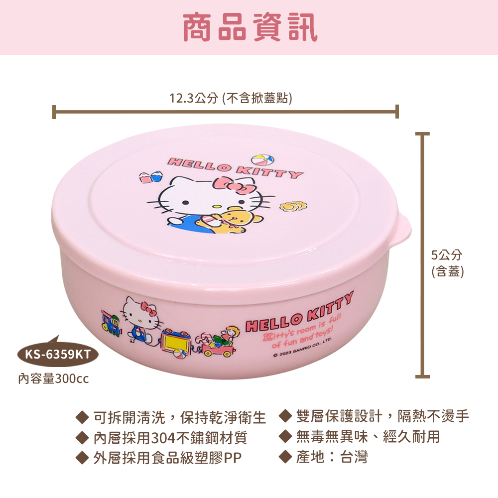 【SANRIO】《台灣製》不鏽鋼隔熱兒童碗300ML HELLO KITTY KS-6359KT