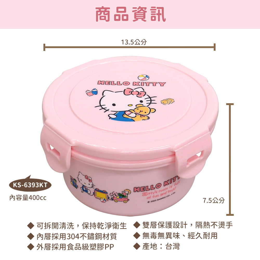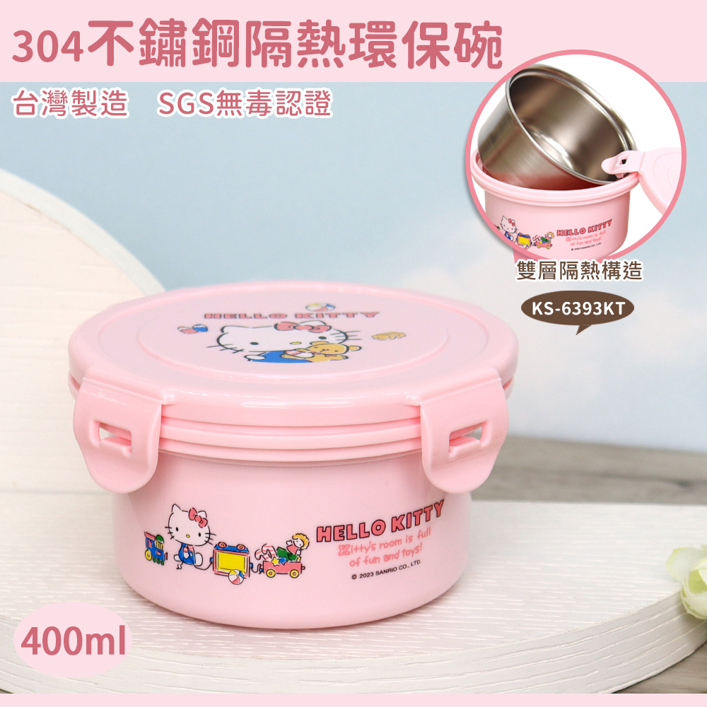 【SANRIO】三麗鷗 不鏽鋼隔熱環保碗400ML HELLO KITTY KS-6393KT