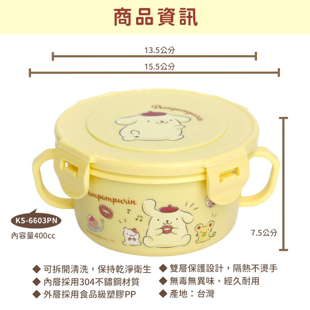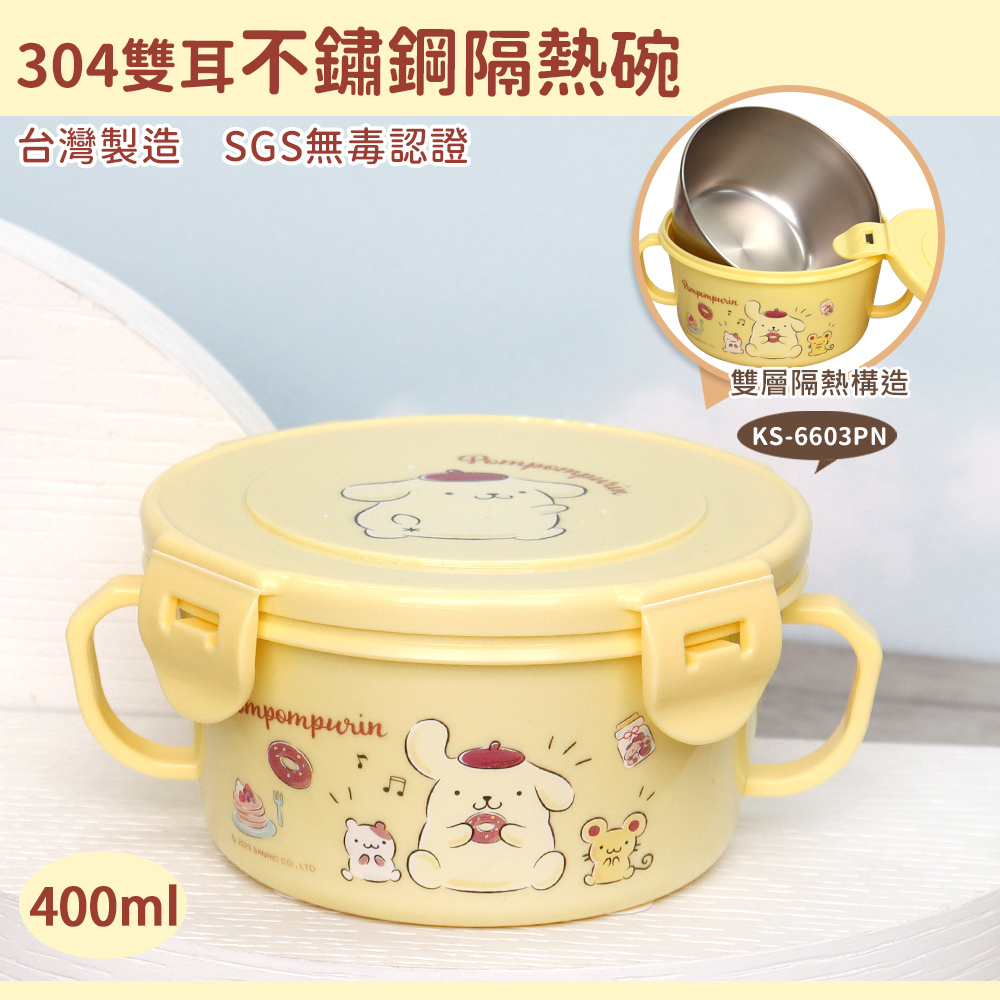 【SANRIO】三麗鷗 304雙耳不鏽鋼隔熱環保碗 400ML 布丁狗 KS-6603PN