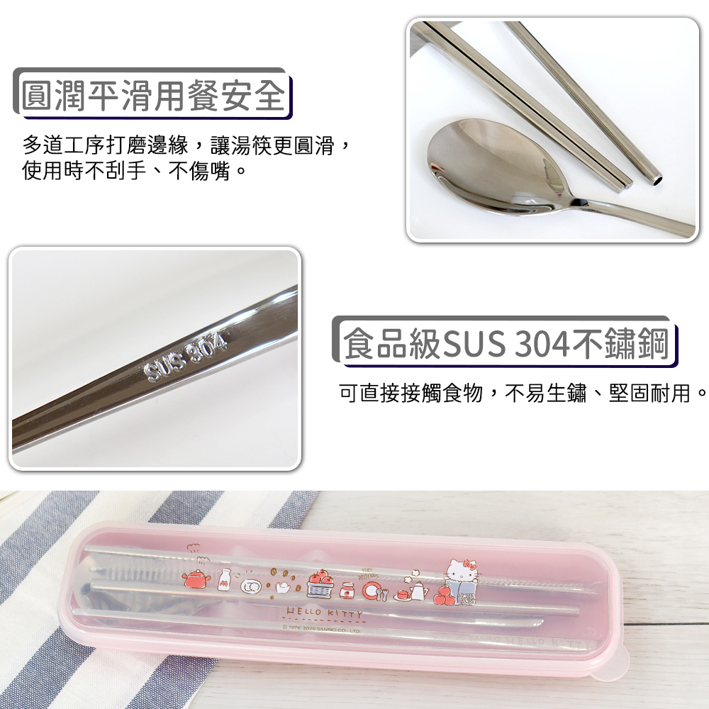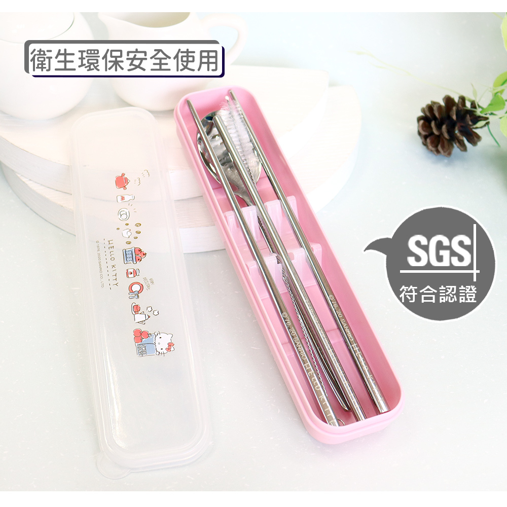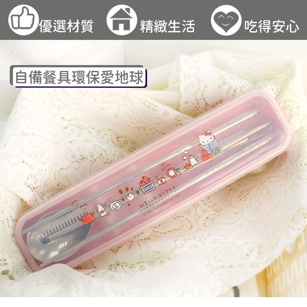 【Sanrio】三麗鷗 Hello kitty不鏽鋼環保餐具吸管5件組-蘋果款 KS-7210KA