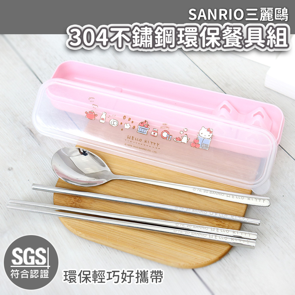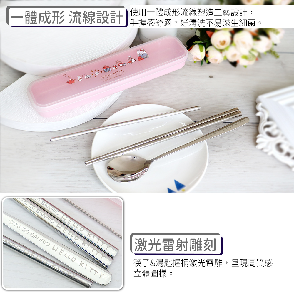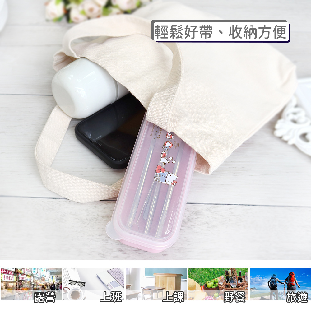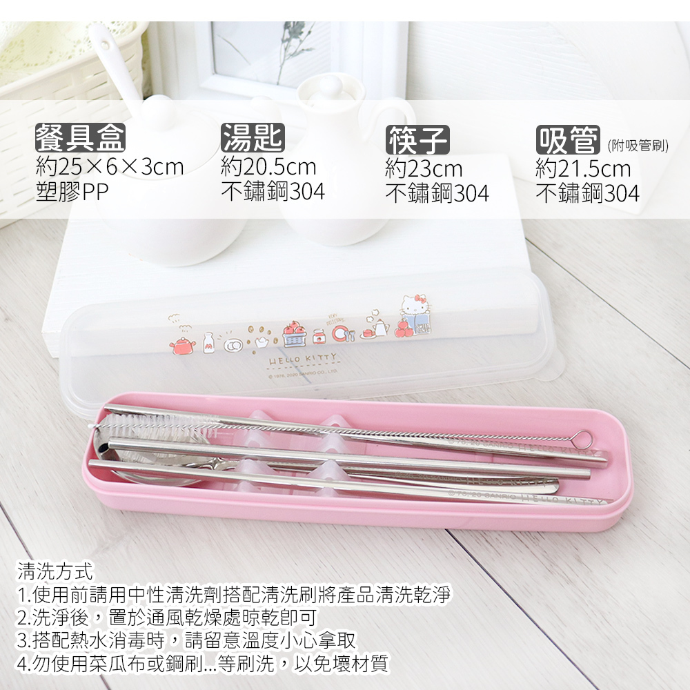 【Sanrio】三麗鷗 Hello kitty不鏽鋼環保餐具吸管5件組-蘋果款 KS-7210KA