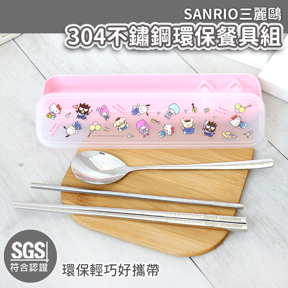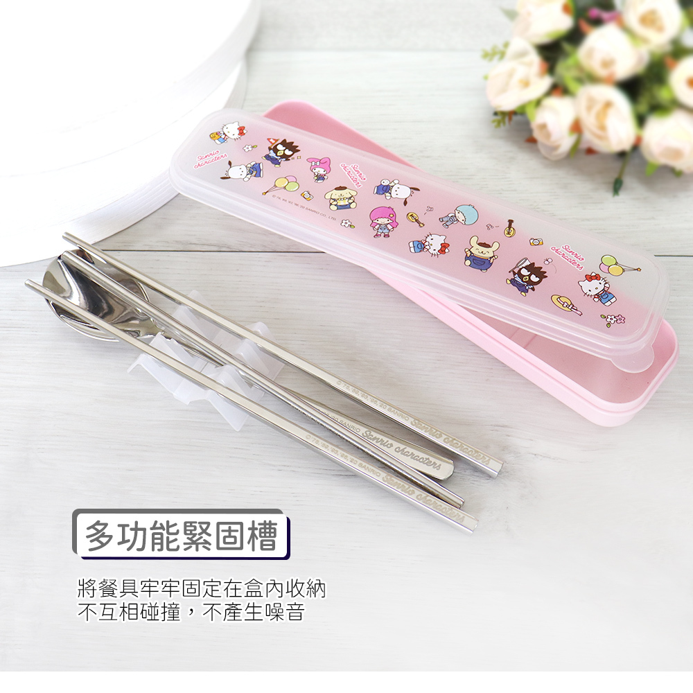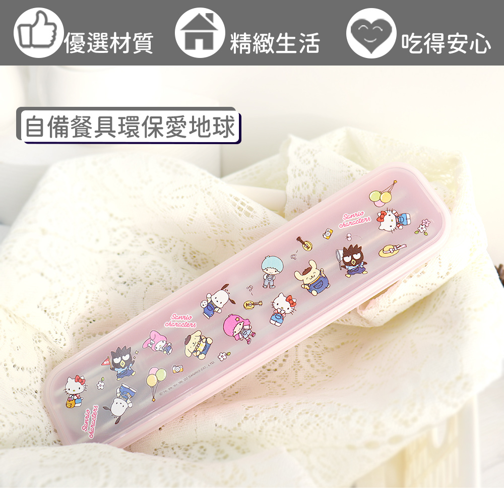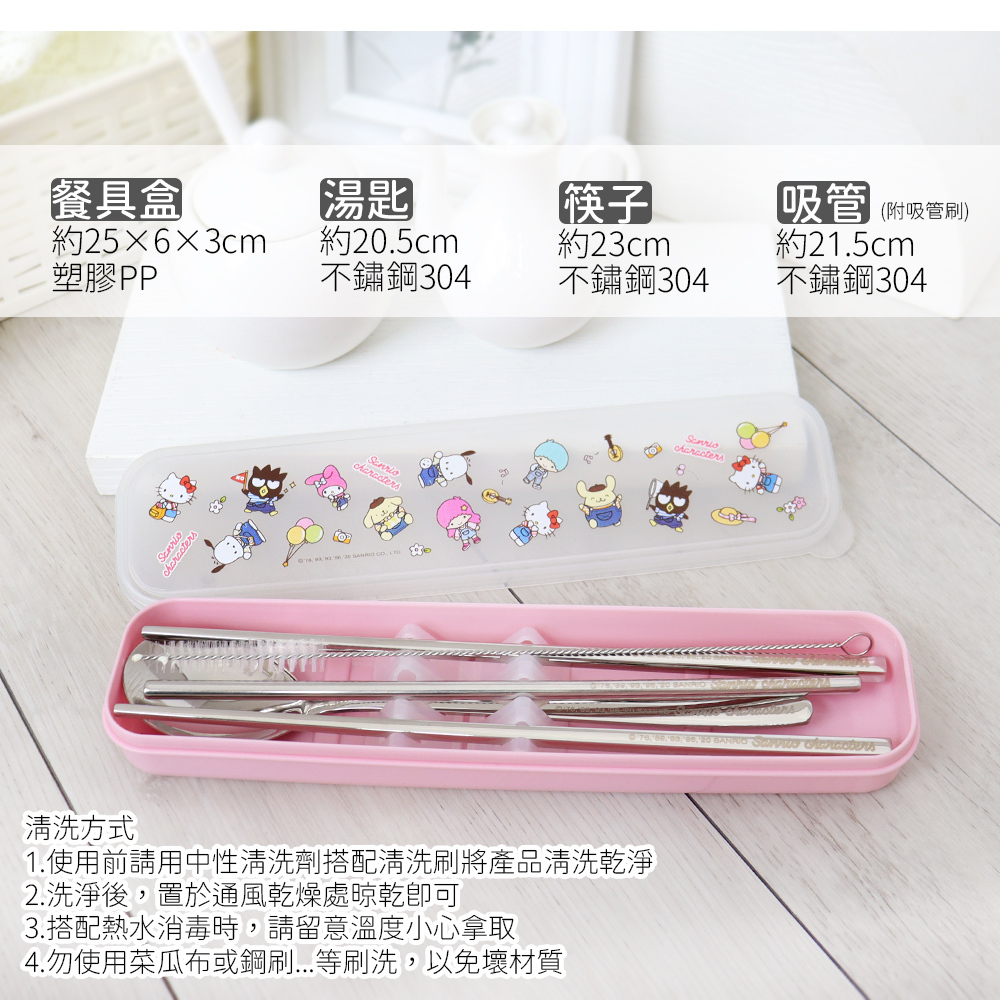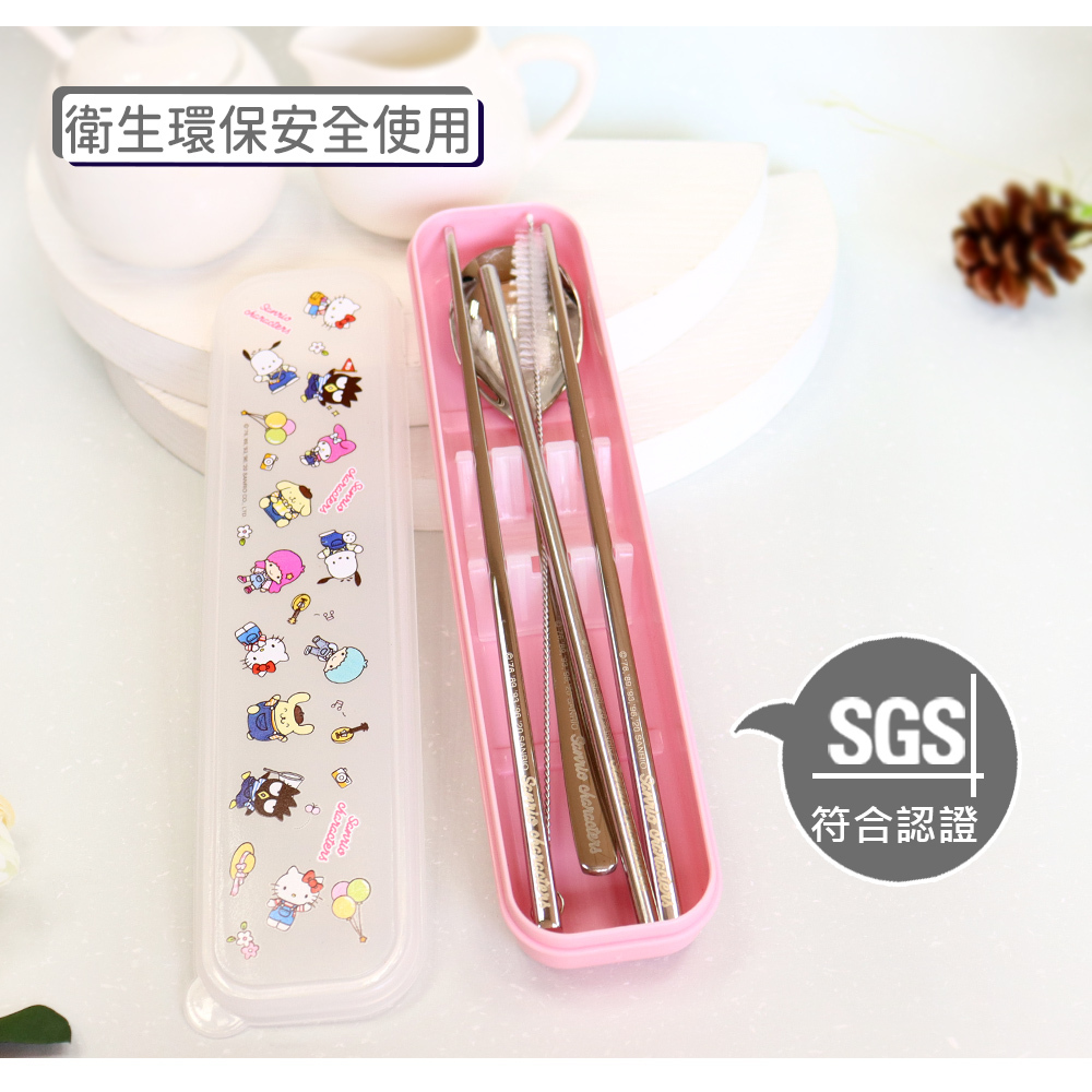 【SANRIO】三麗鷗 不鏽鋼環保餐具吸管5件組-明星總動員(粉色)KS-7210KP