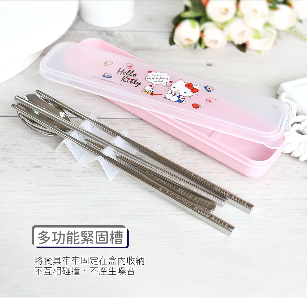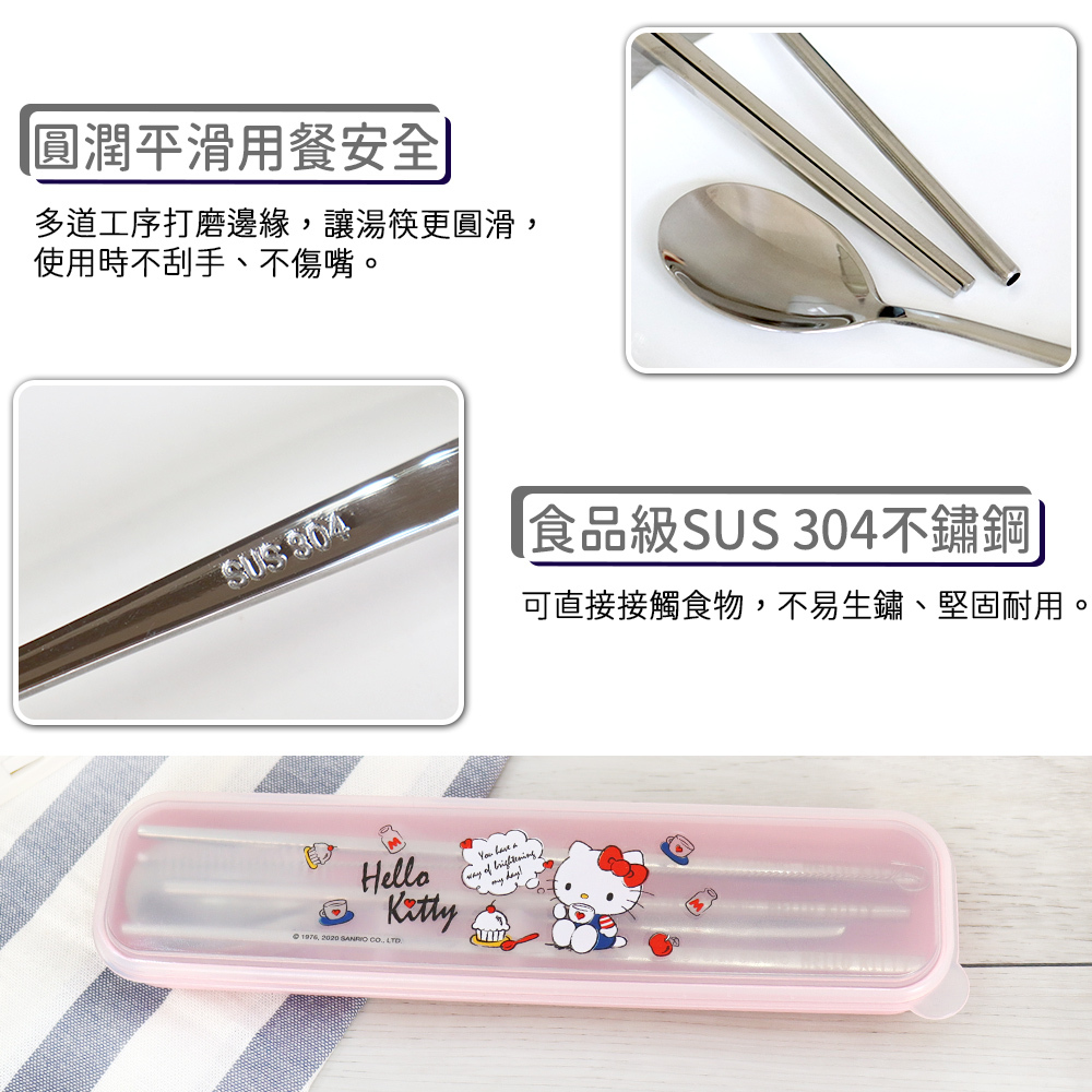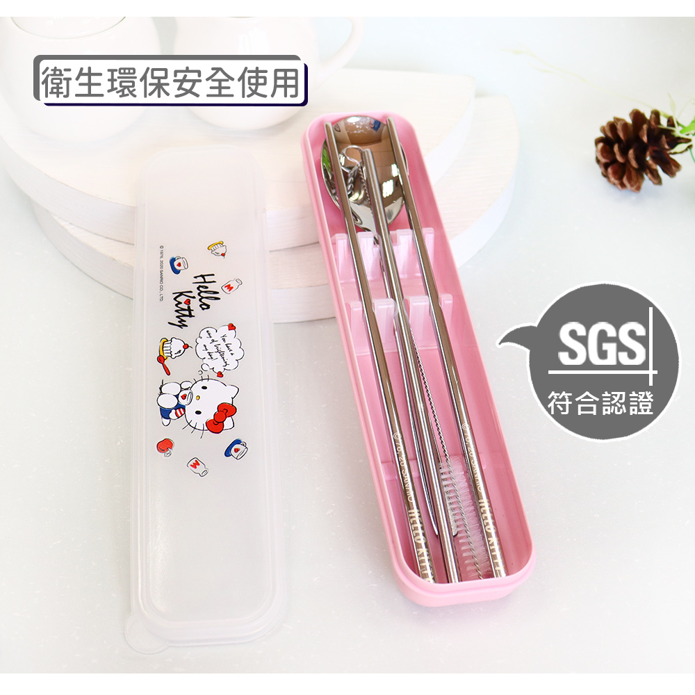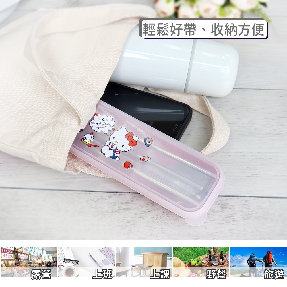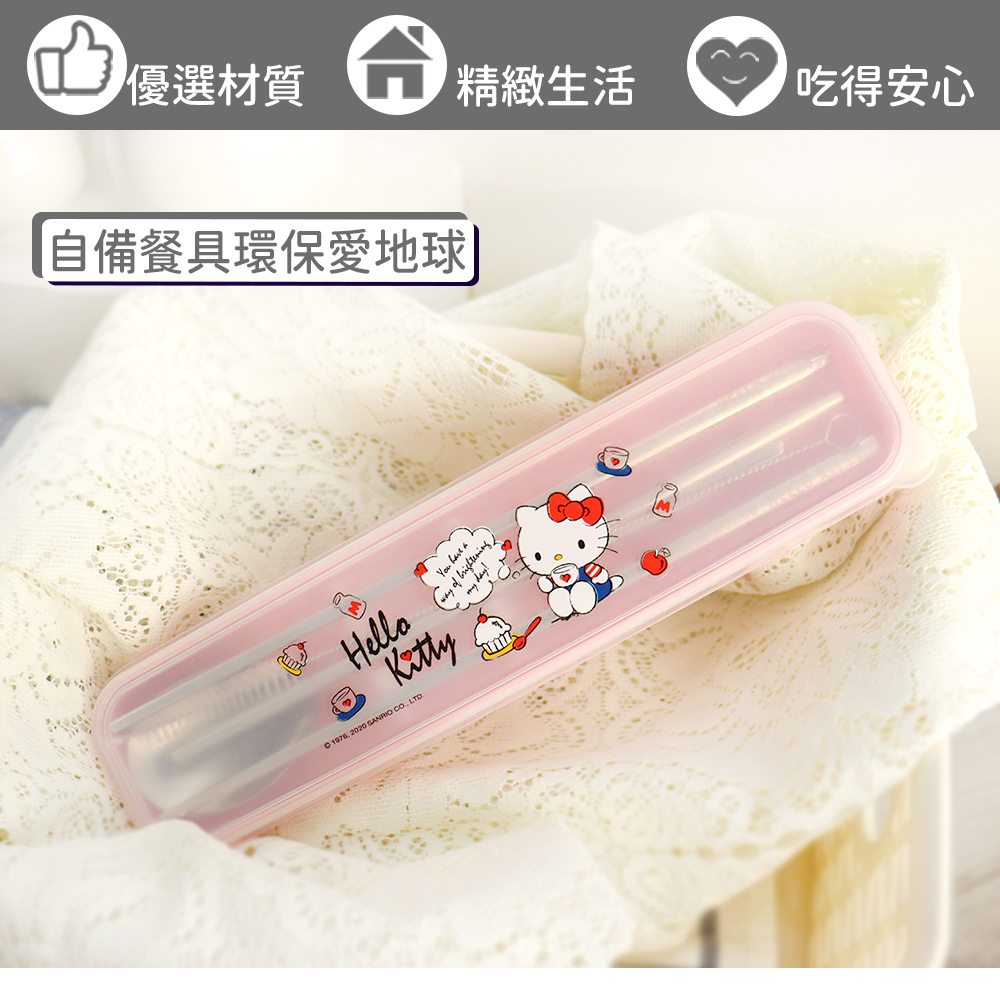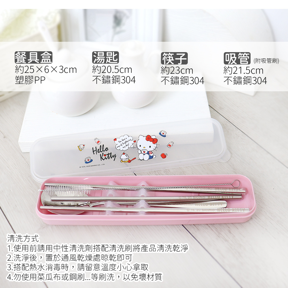 【Sanrio】三麗鷗 Hello kitty 不鏽鋼環保餐具吸管5件組-午茶款 KS-7210KT