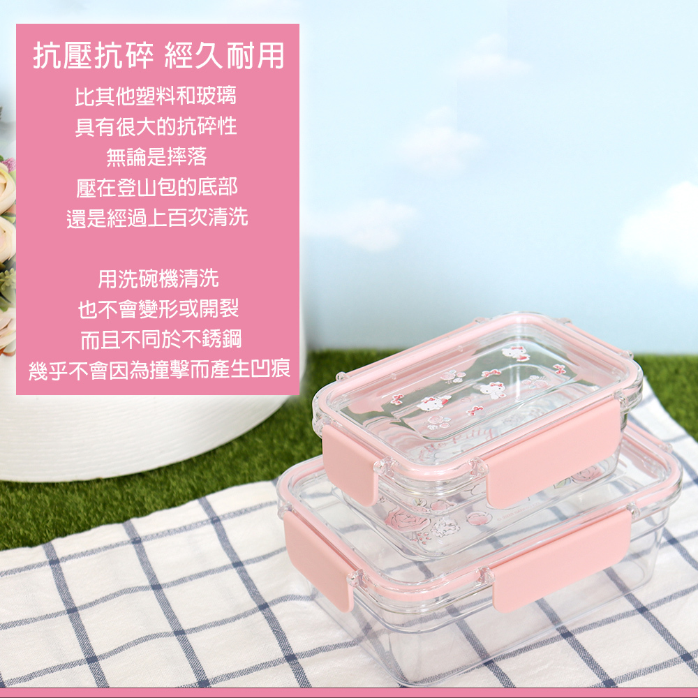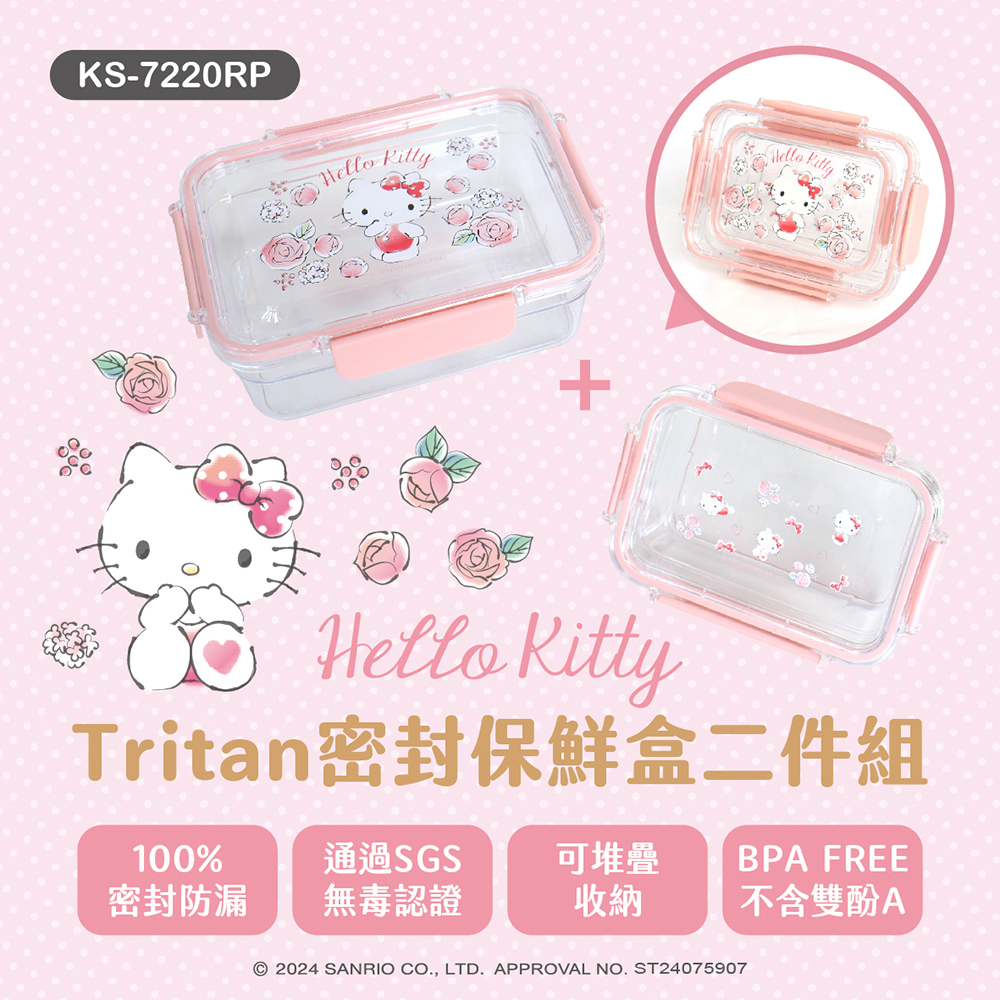 【Sanrio】Hello Kitty TRITAN 可堆疊輕透保鮮盒二件組 KS-7220RP 長型