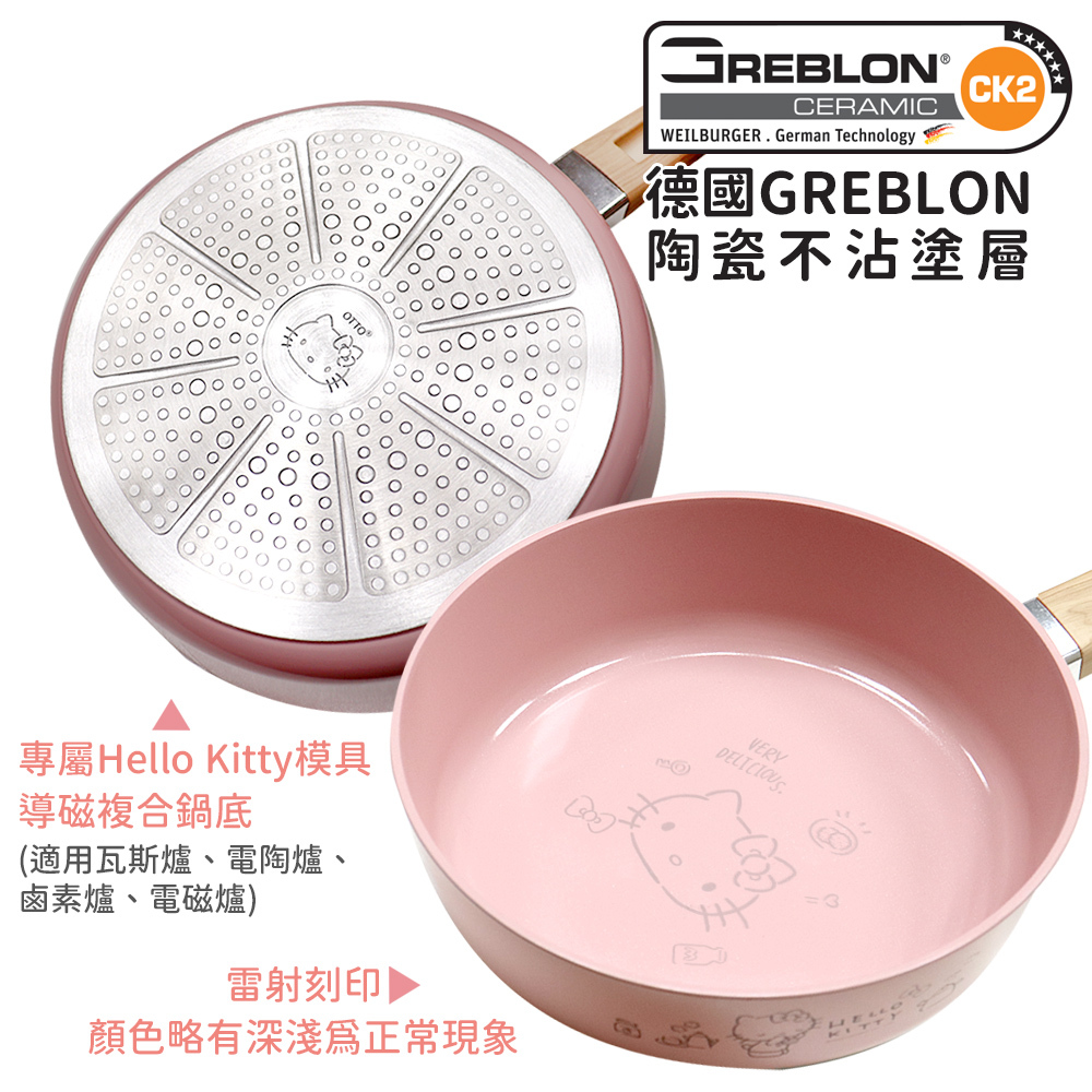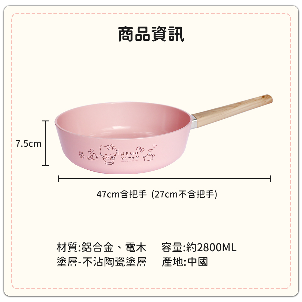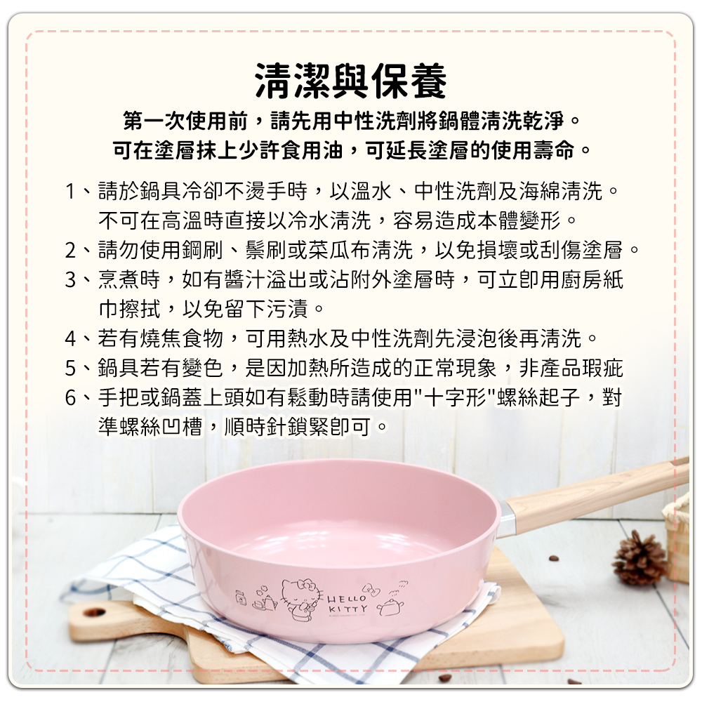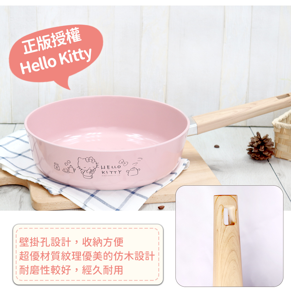 【Sanrio】Hello Kitty-陶瓷不沾26公分深平底鍋+圍裙組+隨手杯組 OT-2226AE