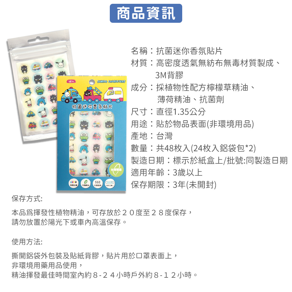【SANRIO】男孩款 台灣製抗菌迷你香氛貼片/口罩貼片-48枚 KM-6048XS